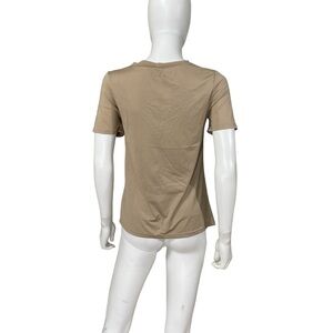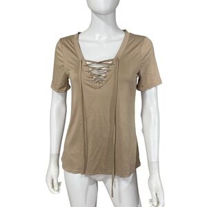 Beige V Neck Lace Up Short Sleeve Top Condition:New