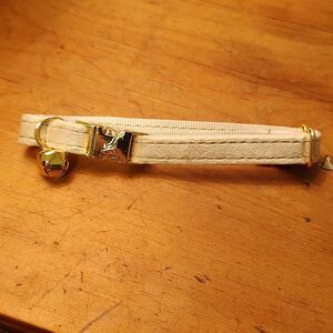 NWOT Beige Velvet Adjustable Cat Collar with Gold Bell and Breakaway Closure. This handsome collar features soft velvet straps, breakaway clasp and an adjustable fit. Handmade.