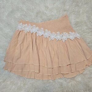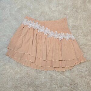 Tiered Flare Skirt,, Vintage y2K look with detailed lace floral detail, like new.