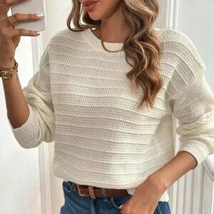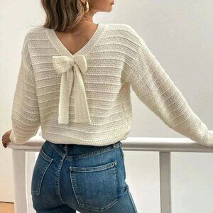 Beige Women's Backless Drop Shoulder Casual Pullover Sweater