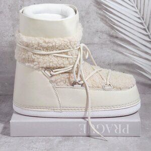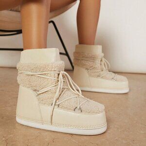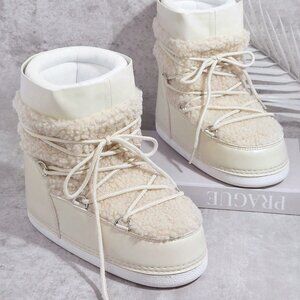 Beige Women's Faux fur Lace Up Round Toe Bootie Shoes