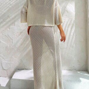 Beige Women's Shirt Blouse And Skirt Two Piece Outfit Cover Up Set