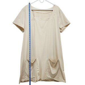 Beige Womens Short-Sleeve Square-Neck Dress With Pockets Size 2XL