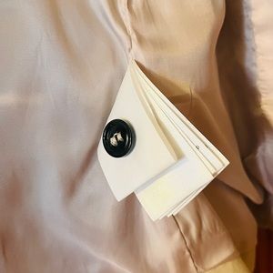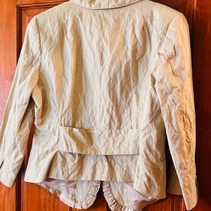 Beige wrinkle jacket with rose lapel. This jacket material is to be worn wrinkle. If you iron, it will not take away the wrinkle.