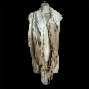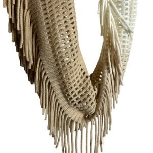 Beige and White Infinity Scarf Fringe Womens Ombre NWOT