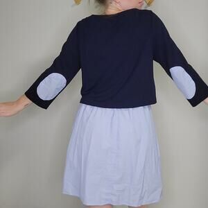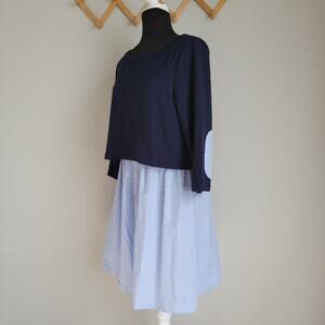 Beige by ECI 2 Layer Dress - Size 10 - Tank top dress with sweater top attached - light blue and white pinstripe skirt connected to navy blue tank top underneath navy blue sweater top with pinstripe elbow patches - great pre-owned condition!