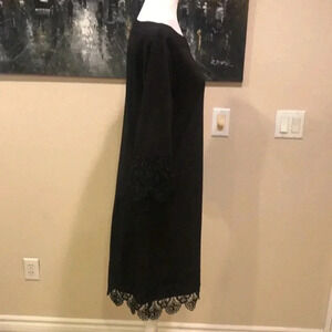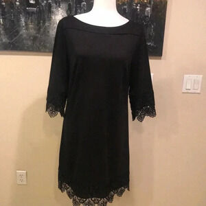 Beige by ECI Black Intricate Scalloped Lace Boat Neck 3/4 Sleeved Dress-Size 10