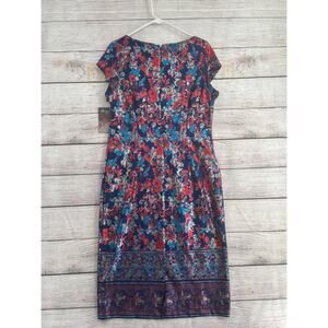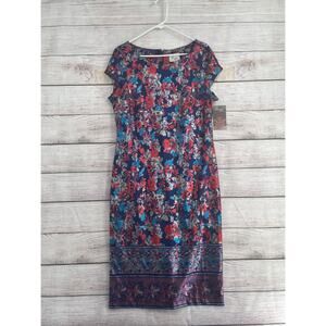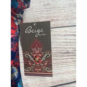 Item: Beige by ECI Metallic Floral Midi Dress Women's Size 14 Blue/Silver/Pink A-Line NEW