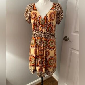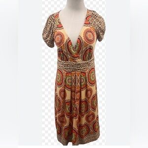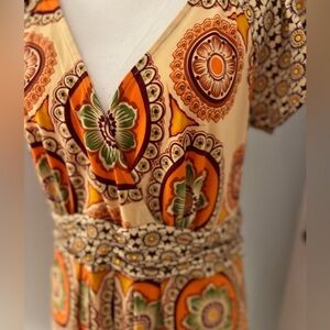 Beige by ECI vintage floral-retro dress with stretch. V neck size M