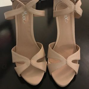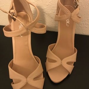 Beautiful Beige pumps that tie at the ankle. Barely used.