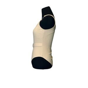 Beige ribbed one shoulder front belted one piece swimsuit size Small