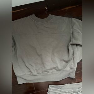 Cozy, beige set, small spot on front as shown in pictures. Very comfortable.