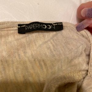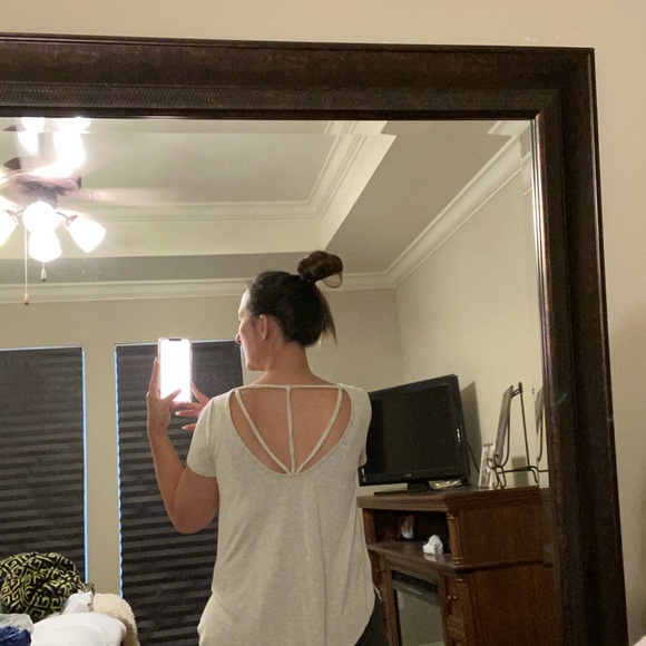 Small beige top with cute opening in the back.