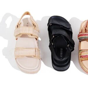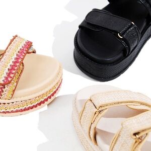 Beige woven chunky platform double strap sandal. Chunky, cushioned and ready to elevate every step. Price is firm.