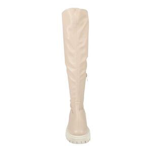 Ecru colored tall knee chunky sole boots