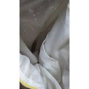 Beige/Silver Crochet Pop-Tabs Tote Bag Purse. Very gently used, with minor signs of wear and minor inherent snags. It has 2 inner pockets and a yellow zippered closure.