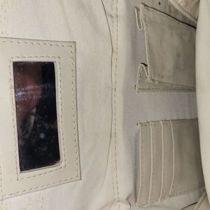 EUC nice little beige purse has lots of pockets, and places for your ID, your credit cards, and will fit about anything you'd like to carry in here. Very clean.