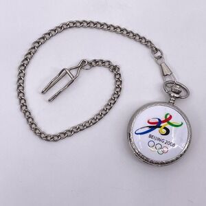 Beijing 2008 Olympics Pocket Watch Collectible Flip Open Pocketwatch with Chain
