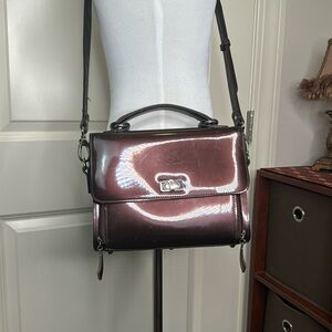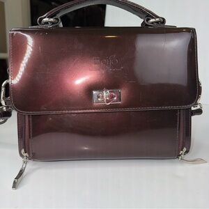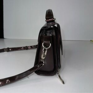 Beijo Brown Patent Top Handle Handbag Crossbody