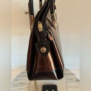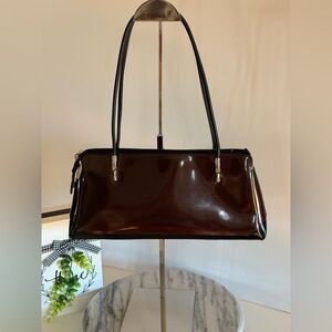 Beijo Classic Shoulder Bag Patent Leather Shiny Chocolate Brown and Black