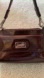 Elegant Beijo - London Paris New York Brown patent leather small crossbody handbag. Exterior has outside front magnetic snap pocket, top zipper closure, silver tone hardware, detachable crossbody strap. Interior has one zipper pocket, and has small spot in corner (see picture).