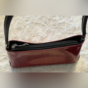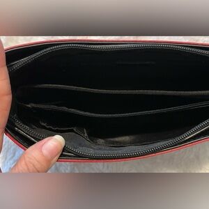 Beijo Red Bag with Black Shoulder Strap (London Paris New York) - This Unique bag is in great gently used condition. The metal work is sleek and classy. The black trim and black bottom with 4 metal studs keep the bag upright. Beijo original design by Susan Handley and son Kyle.