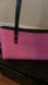 Elegant pink shoulder bag with black straps. Perfect for daily use. Adds a pop of color to any outfit.