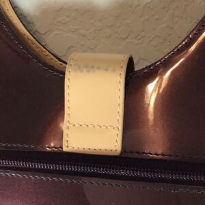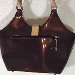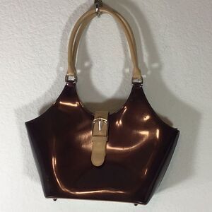 Beijo Bags Benito Bronze Patent Tan Trim Purse Shoulder Bag