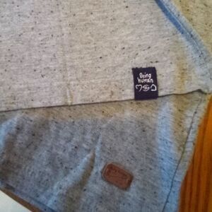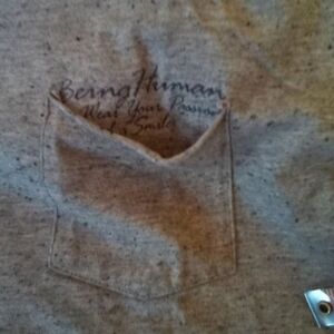 Nice gray speckled long sleeve V neck T shirt V has raw edges small chest pocket says " Being human wear your passion spread a smile" Logos on back and hem. appears to be in excellent like new condition but the material tag is missing size M measures 20" pit to pit 26" long Salman Kahn unisex