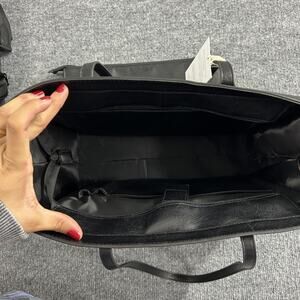 Tag details from photos: The Work Tote – The Details: Large Removable XL Pouch; Hidden pocket for safety; Trolley pass-through sleeve