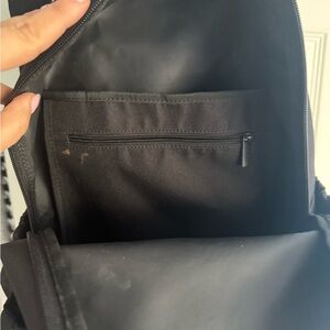 This sleek black backpack is perfect for everyday use. Its minimalist design offers style and functionality. Ideal for work or casual outings