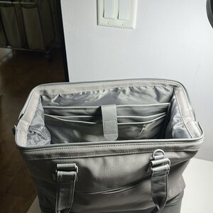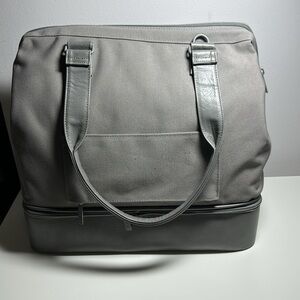 This is a Beis Mini Convertible Weekender bag, the bottom piece can be removed to make a smaller bag. This is canvas and faux leather. It’s been used 1-2 times and is in EUC and comes from a smoke free home.