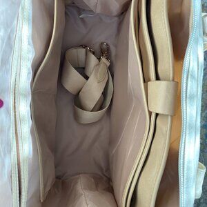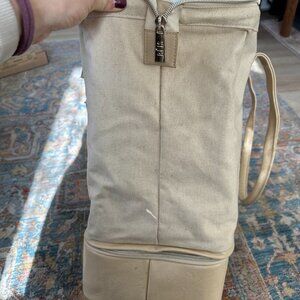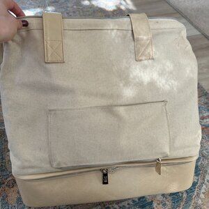 Beis Mini Weekender bag, includes long strop and laptop/tech insert. Shoe compartment is amazing and the pockets are thoughtfully designed. Airline certified.