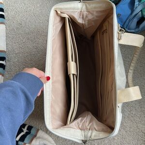 @care_ward Honestly it’s not that noticeable. I’m gonna add another photo above that I just took with flash but it’s faint!! It’s probably dirt from being under the plane seat (since it fits nicely under there)