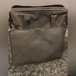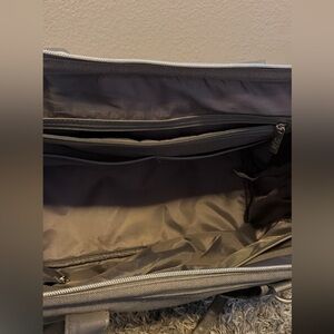 Material: Poly canvas body, vegan leather trim, 100% poly lining, nylon zipper, and zinc alloy hardware.