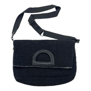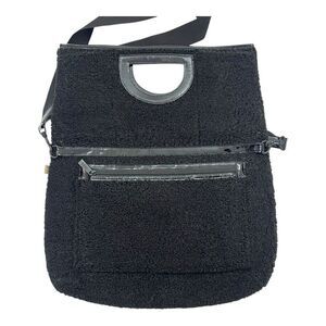 Beis Sherpa Black Messenger Tote Foldover Bag Adjustable Detachable Strap