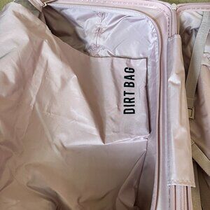 This little bag has taken one trip internationally which accounts of for the scratches on the two edges. Otherwise, perfect condition. Has one dirt bag, but I cannot find the two shoe bags that came with it.