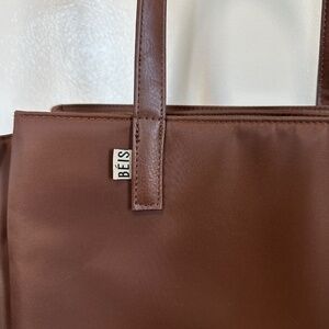 Beis The Commuter Tote in Maple (a rich shade of brown).