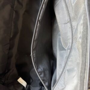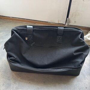 Weekender bag with bottom shoe compartment, interior storage zippers, doctor’s bag opening. Perfect for overnight to weekend stays. Bag is in great condition.