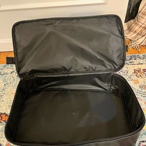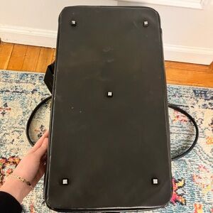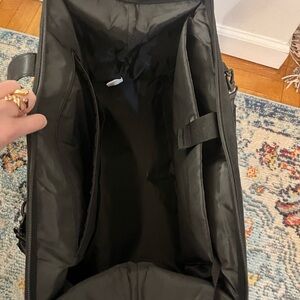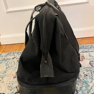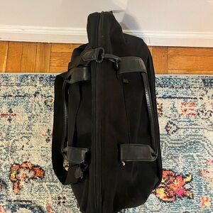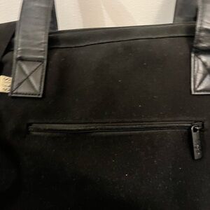 Material: Poly canvas body, vegan leather trim, 100% poly lining, nylon zipper, and zinc alloy hardware.