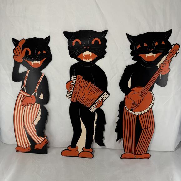 Beistle Scat Cats Cutouts Lot Of Three 1941, 2012 Remake Kitschy Fall Halloween