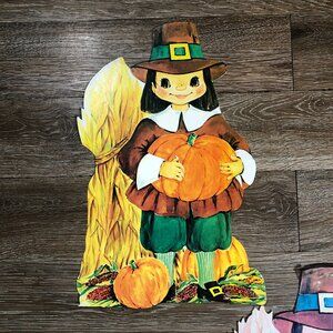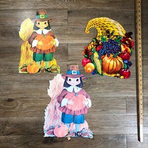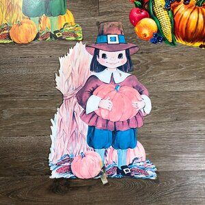 Beistle Vintage Thanksgiving Pilgrims Cardboard Die Cut Decorations Lot of 3