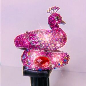 Gift ideas, gift for mom, gift for daughter, gift for wife, gift for wifey, gift for grandma, gift for myself, cuff bracelet, gorgeous cuff bracelet, peacock bracelet, pink peacock bracelet, bling bling bracelet, stunning peacock bracelet,