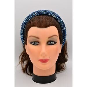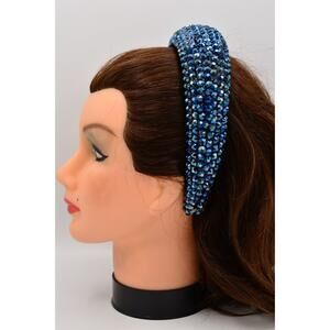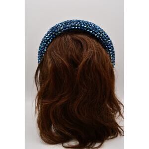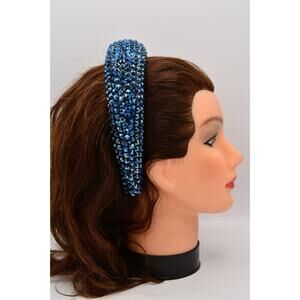 Bejeweled Crystal Headband Blue Black AB Cluster Sparkling Crown Padded Shiny