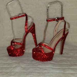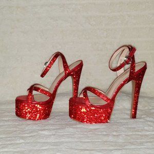Bejeweled Pandora Bright Red Sparkling Rhinestone Platform 6.5" Heels Shoes