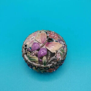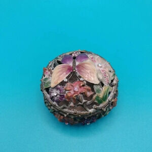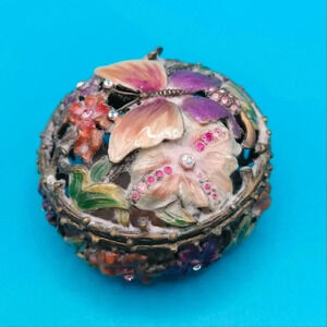 Bejeweled and Enameled Butterfly Trinket Box 2"