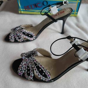 Bejeweled holiday heels brand new size 7.5 with box REDCO BLACK GLITTER