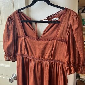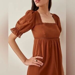 Reformation Bekkah Crocheted Lace-Trimmed Organic Cotton Midi Dress in Cinnamon