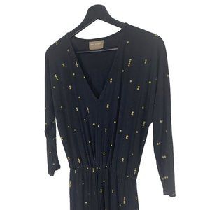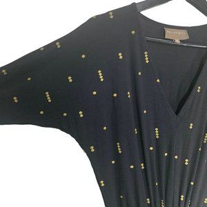 Bel Kazan Black Gold Micro Print Tapered Waist V Neck Dress Small