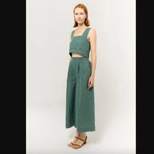 Bel Kazan Larkin Button Back Top + Atlas Gaucho Pants Linen 2pc Coord Set XS.